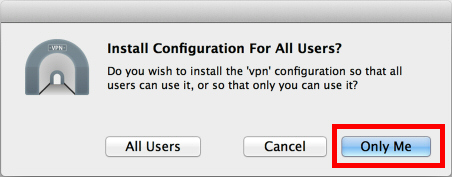双击 .tblk 文件夹,将显示以下屏幕。点击 "Only Me"